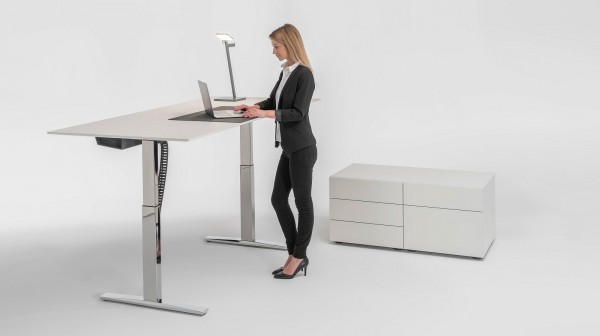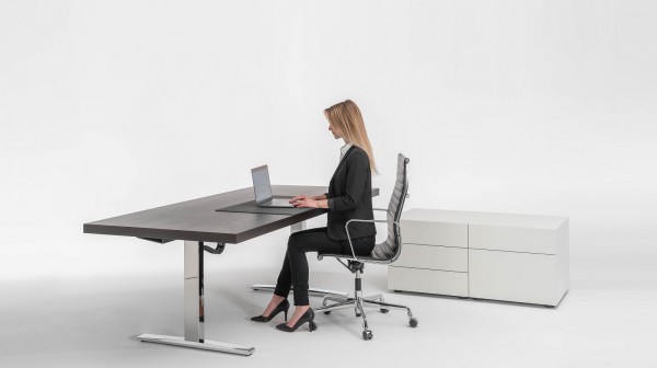 Der höhenverstellbare Upsite überzeugt durch sein leichtes, klares Design und die erstklassig gearbeiteten Oberflächen. Die rechteckige Tischplatte kommt entweder optisch schlank mit feiner Kante oder präsenter mit gerader Kante daher.