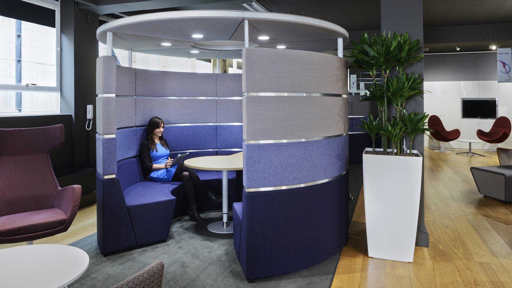 ... in der Mittelzone. Die Mitarbeiterinnnen und Mitarbeiter von heute müssen kreative Problemlöser sein. Sie wollen selbst entscheiden wo und wie sie arbeiten. Prespace Tube erfüllt die verschiedenen Bedürfnisse nach Zusammenarbeit und Regeneration. Auf ganz ...